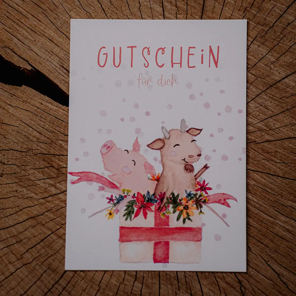 Der vielseitige Klassiker unter unseren Geschenken: Gutscheine können für alle unsere Programme eingesetzt werden - vom unvergesslichen Kindergeburtstag über entspannte Freizeitangebote bis hin zu individueller Tierzeit.